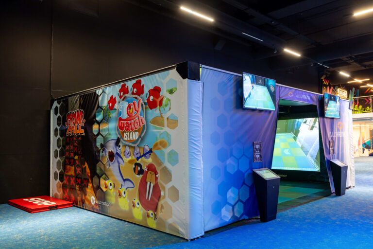 Norinčių išbandyti interaktyvius sporto žaidimus „360 Arenoje“ laukia tokios įtraukiančios pramogos kaip „HiT iT!“, „ValoArena“, „ValoJump“, „SisyFox“, „iWall“, „High-9“, „Powrplay“, „BattleBaskets“, krepšinio arena.